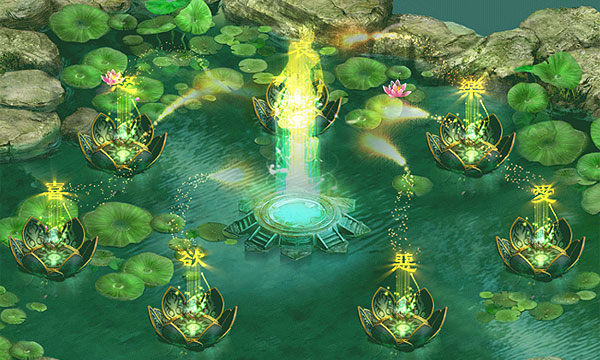 在天仙池中需接受成为天仙的必要磨练!七种不同的妖兽代表了“喜,怒,哀,乐,爱,恶,欲”这七情,妖兽会依次跃下莲花座对你进行考验。 |