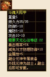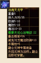 融合神器,经上古炉火配合各种灵石熔炼而出的极品装备。由于一般肉体无法承载其强大的灵力,所以仅是内敛与外现元神融合后的融合元神才可穿戴!